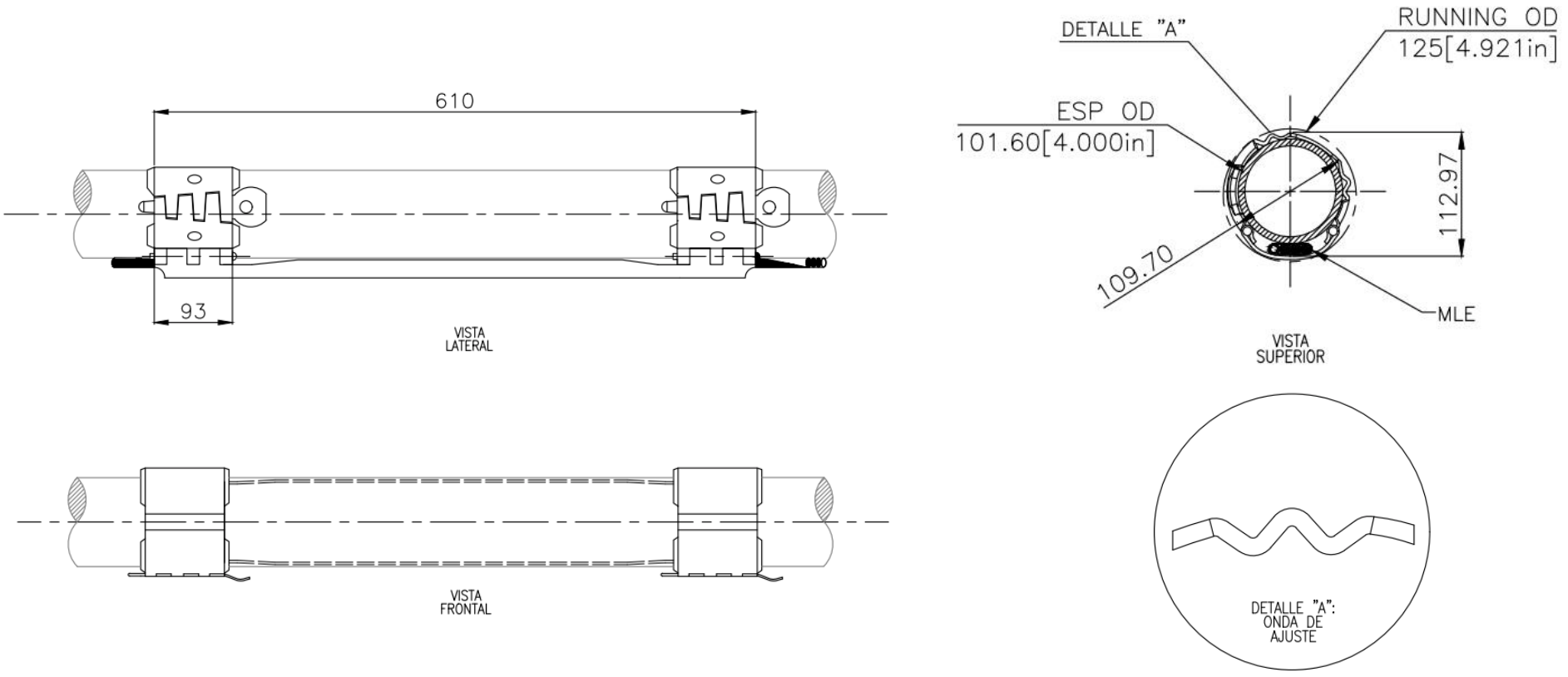 Especificaciones Material Espesor ASTM A-36/A1011 3 mm Aplicaciones OD ESP MLE 4,00 in AWG # 4-6 Protector