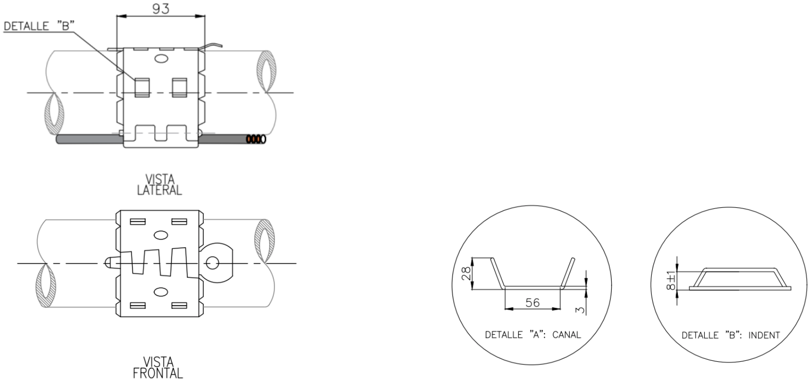 Material ASTM A-36/A1011 Espesor 3 mm Aplicaciones Power Cable 1 2 4 Tipo Rosca Capilar 1 2 1 2 1 2 OD Tubería Canal 5 1/2 in 25x56 x x x Coupling EUE - VAN - N VAN - SEC - BTC Protector Mid Joint