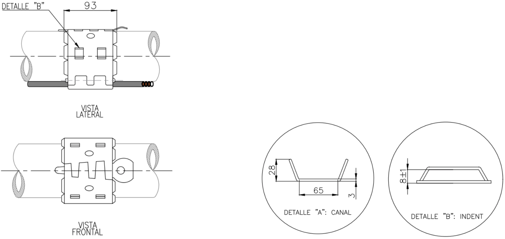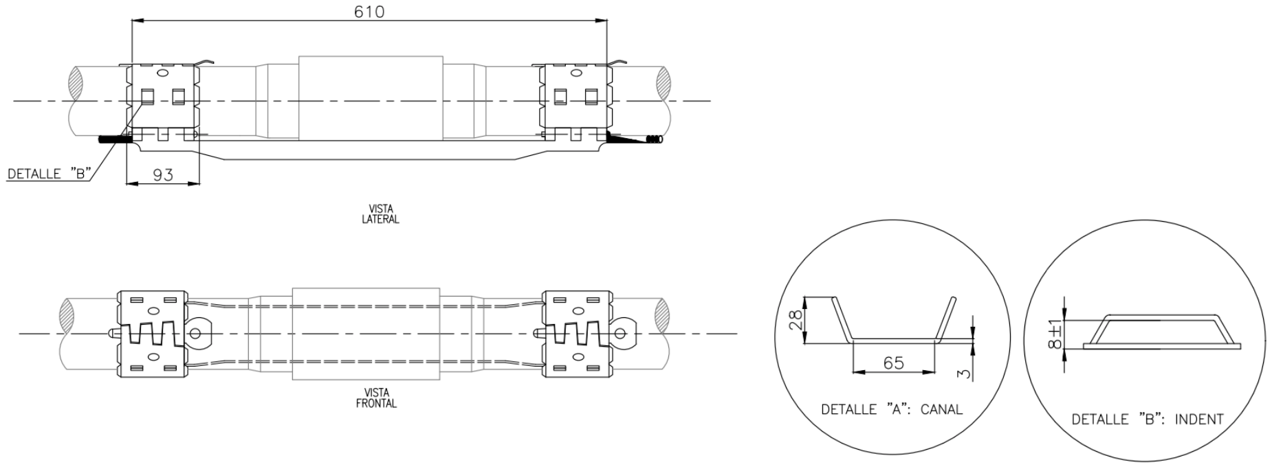 Material ASTM A-36/A1011 Espesor 3 mm Aplicaciones Power Cable 1 2 4 Tipo Rosca Capilar 1 2 1 2 1 2 OD Tubería Canal 5 1/2 in 25x65 x x x x x Coupling EUE - VAN - N VAN - SEC - BTC Protector Mid Joint